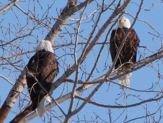 branches in the way. One eagle soon flew off, but settled back on a lower