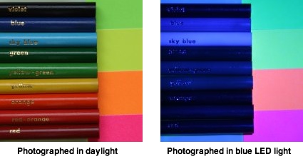 other than blue. The effect can be dramatic. If you shine a blue LED around a